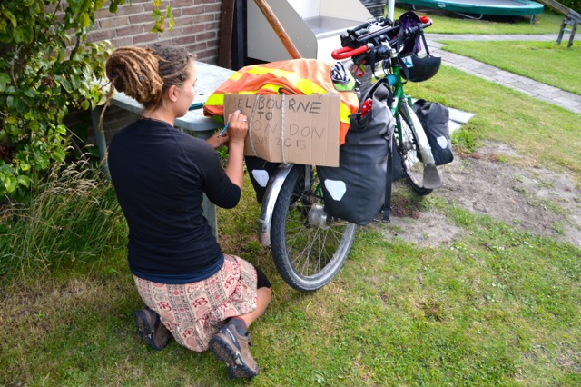 DSC_0373 Published January 14, 2016 at 640 × 426 in Cycling Paradise – Welcome to The Netherlands. ← Previous Next → Jude thought it was time for a sign on her bike.