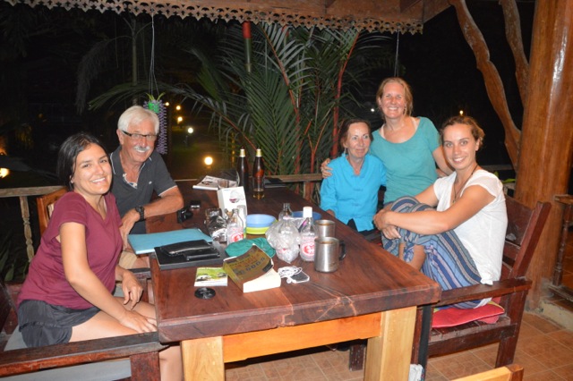 We pedaled on hoping to make Chiang Khong just after sunset, but it was not to be. After a day of mostly flat riding the hills began again and they sapped our remaining energy. As the others did not have a tent as yet, we had to scout out some accommodation before nightfall. In the middle of a little village we spotted a sign to a resort. We followed the signs for another couple of kilometres and were greeted with the view of a lake backed by peaks as far as we could see. The resort had everything you could possibly want bar one major thing – food. Why a resort in the middle of nowhere would not provide meals is beyond me. Marita, Jude and I cycled back to town hoping to catch one of the food stands still open, but again it was not to be. We rummaged through the only shop open and our last dinner in Thailand consisted of lukewarm 2-minute noodles, cashews, sweet biscuits, a carrot and avocados. Luckily we had some Ovaltine, an enjoyable nightcap for all.