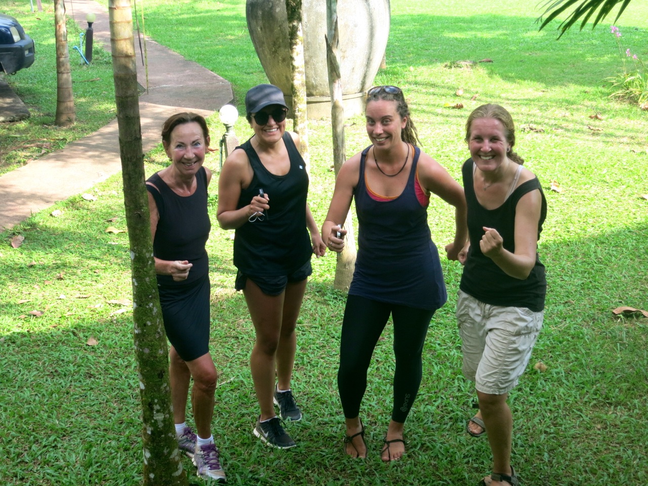 As the rising sun coloured the mountain red, fried eggs on rice and cups of coffee/tea were consumed. The suns rays warmed us, especially Marita and Vika as they had been woken in the night by water flooding their tent. With spirits raised we pedaled north and into the first hills we have seen since the Cameron Highlands. Still recovering from my illness, my riding was not up to its usual standard and I found it a struggle to keep up with the ladies. Frequent rest breaks were required and numerous snacks were taste tested for quality (and calories). On one such break I laughed at my co-traveller’s obsession with their smartphones, when the owner of the small shop let us know that she had free Wi-Fi. Having ‘survived’ 30 hours without the internet they were glued to social media sites for the next hour.