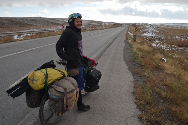 The next day we rolled onto the highway to thumb a ride as we had already cycled most of this section coming down to Shiraz. It took 20 mins before a truckie pulled over. Bikes were heaved onto the back and secured. We took our place in the cabin with the driver and enjoyed the different view. This is Iran so everytime we went to through a police check Astrid and I hid and Barbara pretended to be Iranian, pulling her headscarf tightly around her face. Our driver ended up being one of those true Iranian gentlemen, stopping so we could buy bread and dropping us at a perfect picnic area. Later he came back with his wife because I had left my gloves in his truck. They both invited us to stay but we needed to keep heading north.